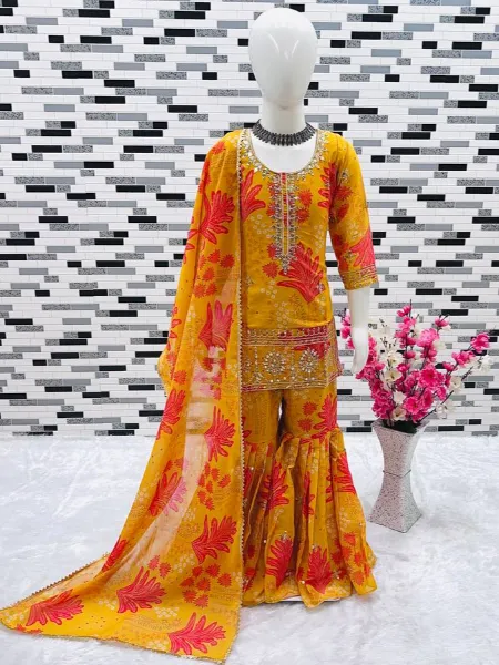 Yellow Georgette Kurta With Sharara Ready to Wear Kids Wear