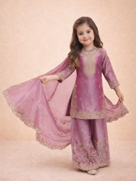 Lavender Kids Kurta and Sharara in Jimmy Choo Silk With Sequins Embroidery Kids Dress