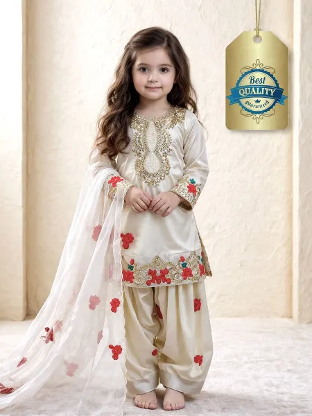 Cream Kids Patiyala in Natural Crepe With Embroidery Kids Punjabi Kurta Dhoti