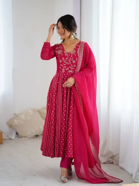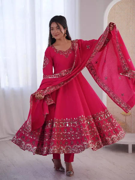 Pink Crunchy Silk Anarkali Suit With Sequence Embroidery Work and Dupatta