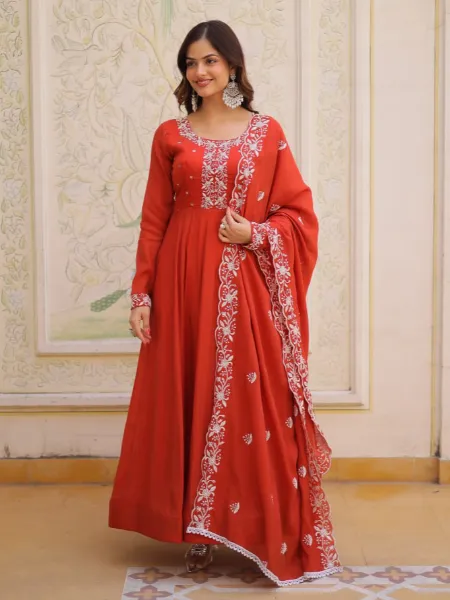 Orange Anarkali With Beautiful Sequence Embroidery and Dupatta