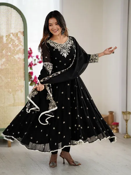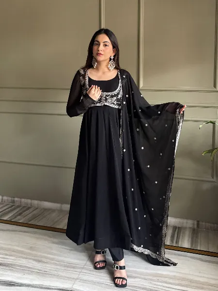 Black Soft Georgette Anarkali With Koti and Dupatta With Embroidery Work