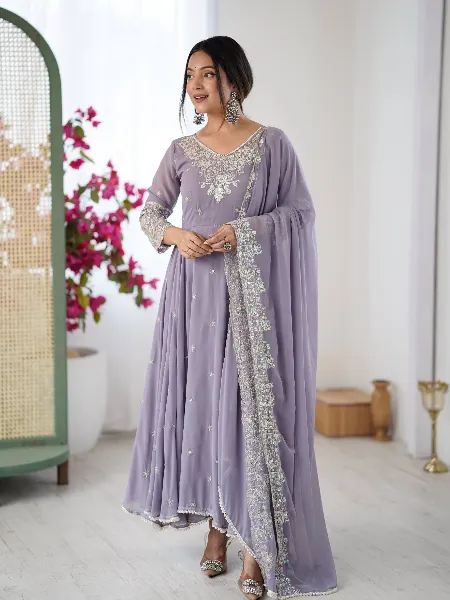Lavender Anarkali in Georgette With Rainbow Sequence Embroidery and Dupatta