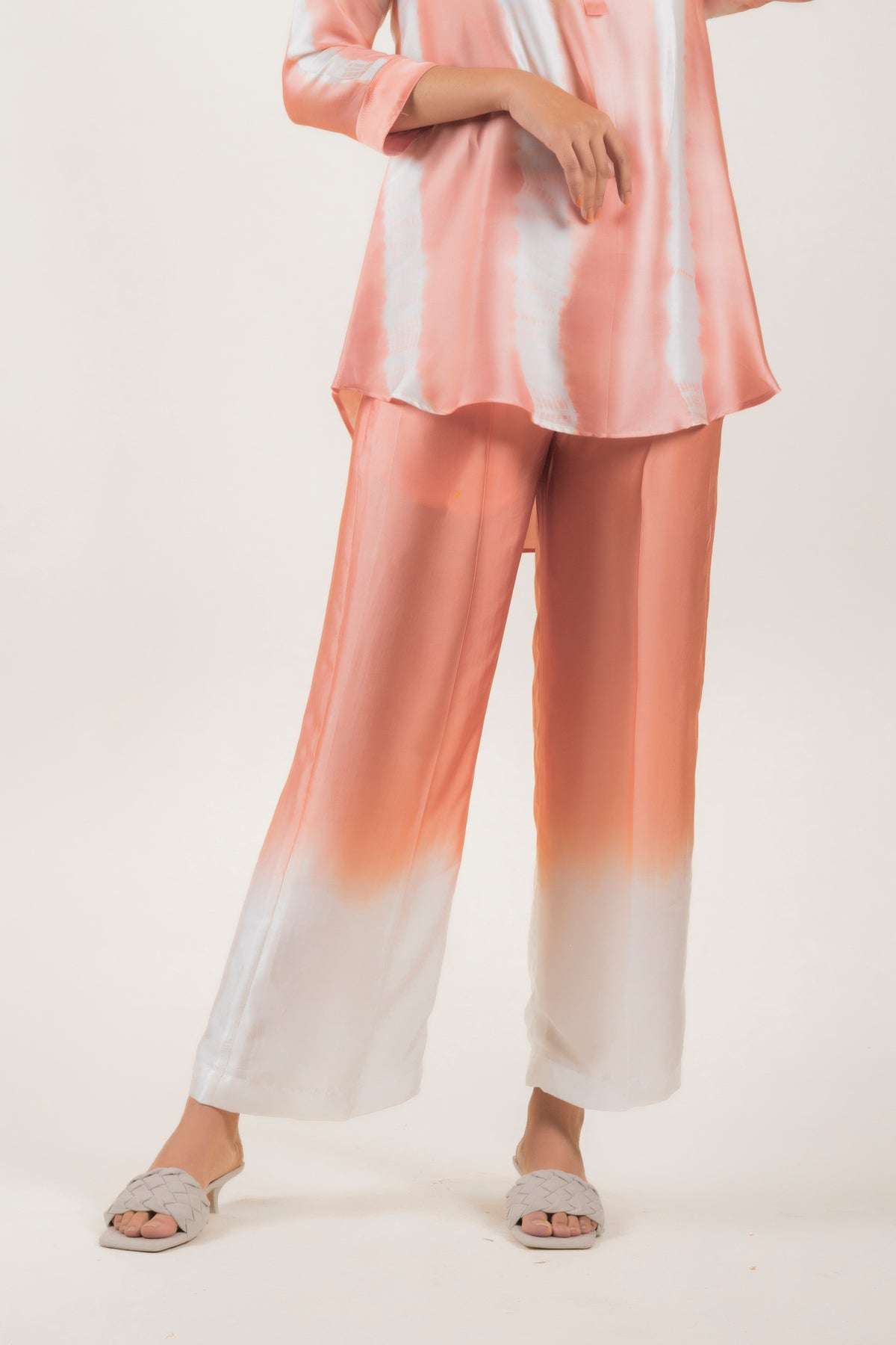 Women's Cotton Tie Dye Print Two-Piece Lounge Set Button-Down Tunic with Palazzo Pants Resort Wear ( Peach )