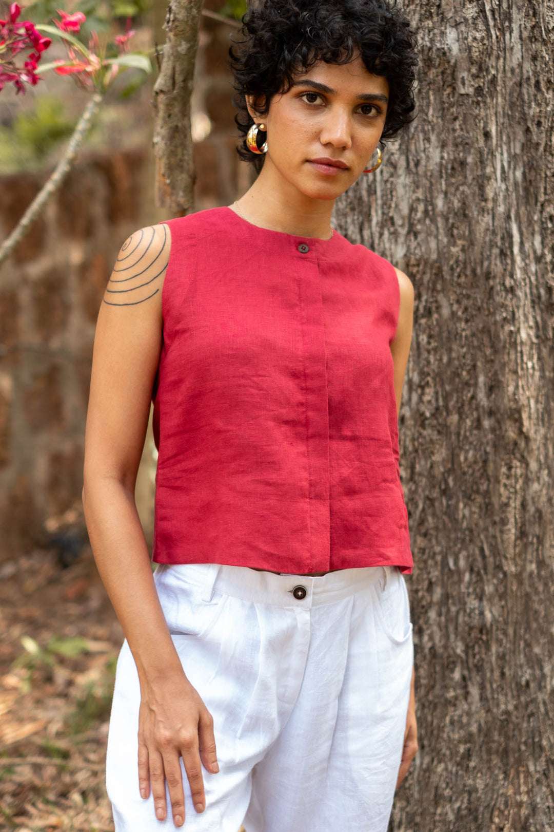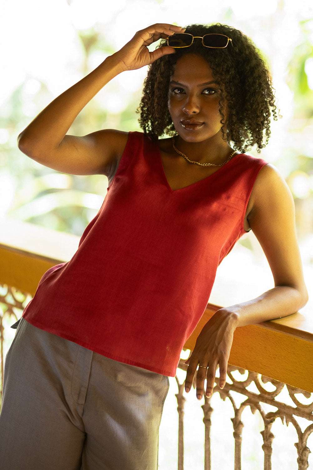 Women's Cotton Solid V Neck Sleeveless 2 Piece Outfit Loose Tank Top and Wide Leg Palazzo Pants Sets cord set ( Maroon White )