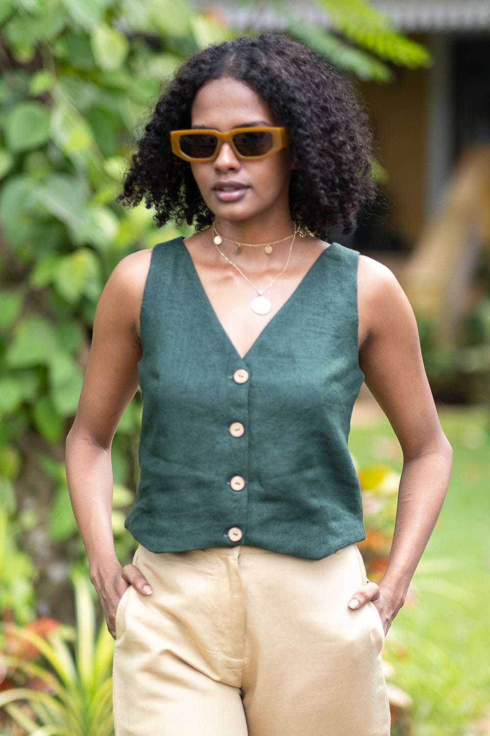 Women's Cotton Solid V Neck Sleeveless 2 Piece Outfit Loose Tank Top and Wide Leg Palazzo Pants Sets cord set ( Green )