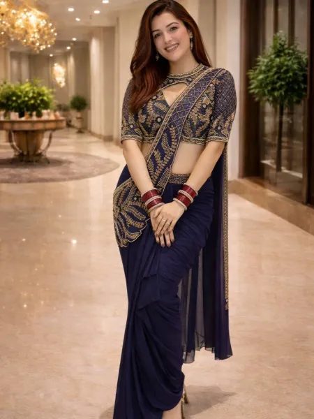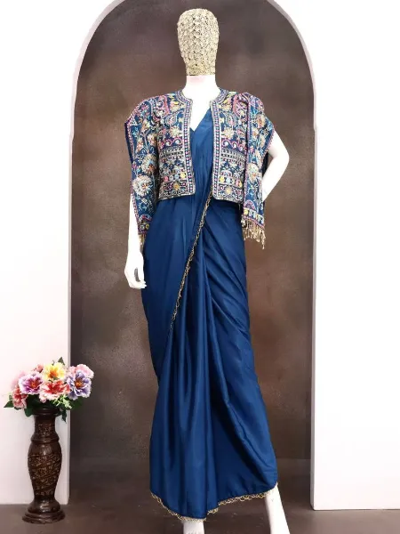 Navy Blue Ready to Wear Saree With Heavy Embroidery Jacket Fancy Saree
