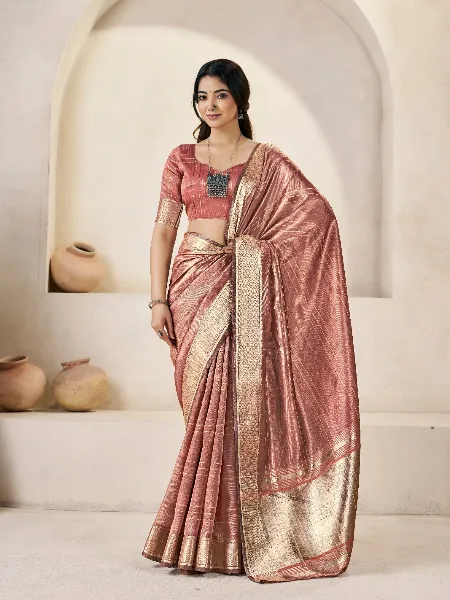 Elegant Linen Saree in Dusty Pink With Gold Zari Weaving and Blouse
